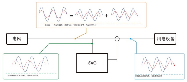 静止无功发生器,简称为SVG,又称动态无功补偿发生装置,或静止同步补偿器。是指自由换相的电力半导体桥式变流器来进行动态无功补偿的装置,是目前无功功率控制领域内的优选方案。实时跟踪系统无功功率变化,线性补偿,确保系统功率因数时刻保持在0.99,容性感性双向的无功补偿范围,根据系统无功变化,实时调节,确保系统不会出现过补欠补问题;主动式补偿输出,避免传统无功补偿设备常见的谐振、谐波放大、低电压补偿效率低等问题。